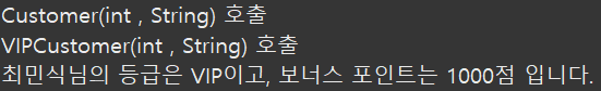 VIP 등급인 최민 신 고객을 생성할 때는 상위 클래스 생성자를 먼저 호출한 후 하위 클래스 생성자의
