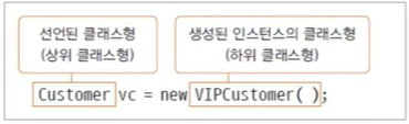 VIPCustomer 클래스로 인스턴스를 생성할 때 인스턴스의 자료형을 Customer로 형 변환하여