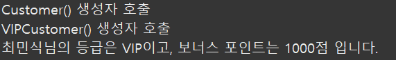 그리고 VIPCustomer() 생성자에도 출력문을 추가한다.