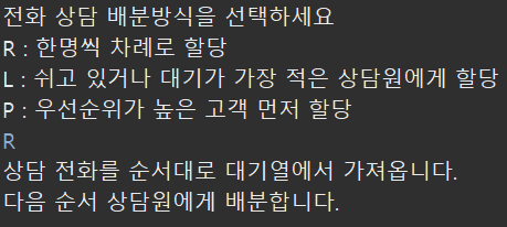 System.out.println("전화 상담 배분방식을 선택하세요 ");