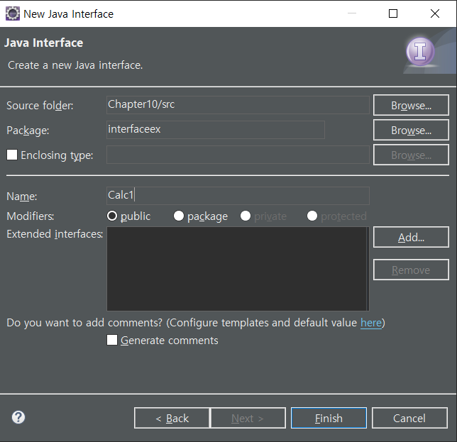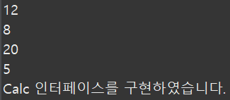 System.out.println("Calc 인터페이스를 구현하였습니다.");