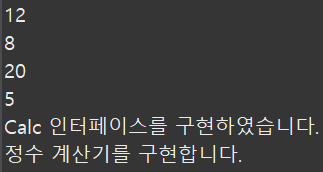 System.out.println("정수 계산기를 구현합니다.");
