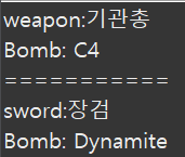 System.out.println("Bomb: Dynamite"); // Bomb인터페이스에 있는 메서드 재정의