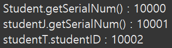 private static int serialNum = 10000; // 외부에서 변경하지 못하게 private로 선언